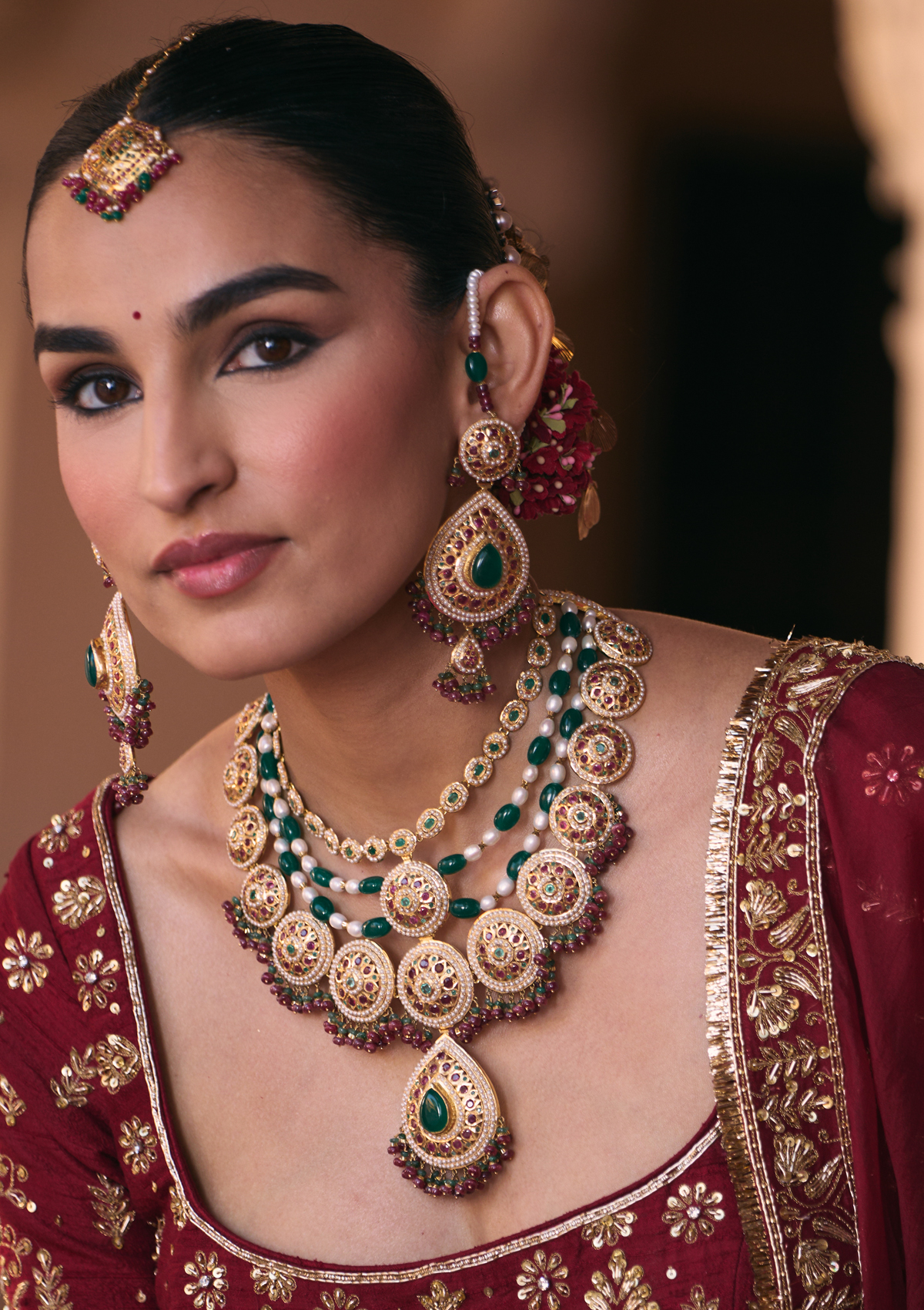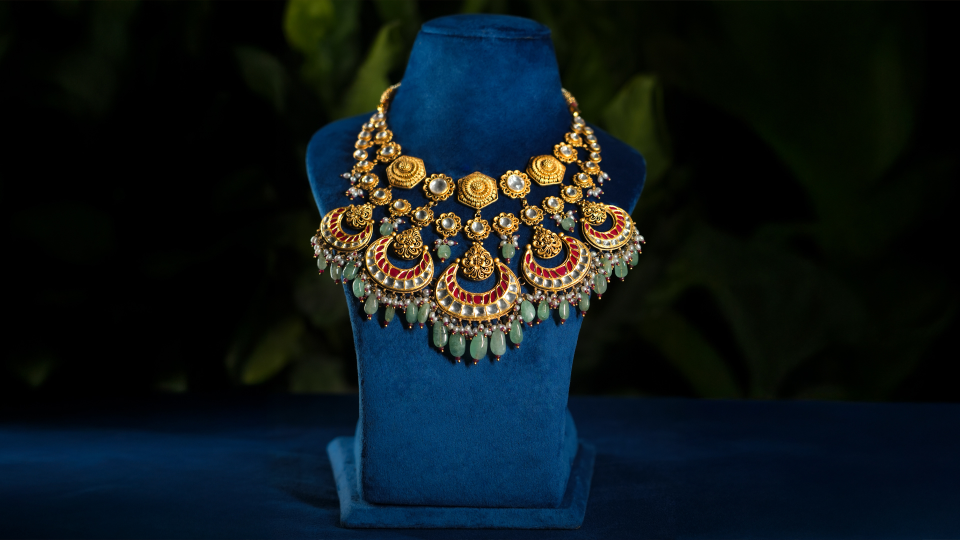Delicate Polki artistry and rich enamel, brought together to create an heirloom piece of unparalleled beauty and grace.
